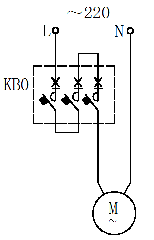 KB0控制保護(hù)單相電動(dòng)機(jī)時(shí)選型舉例。 例如1Kw單相電動(dòng)機(jī)選擇KB0型號(hào)為:KB0-12C/M6.3/02M。 |