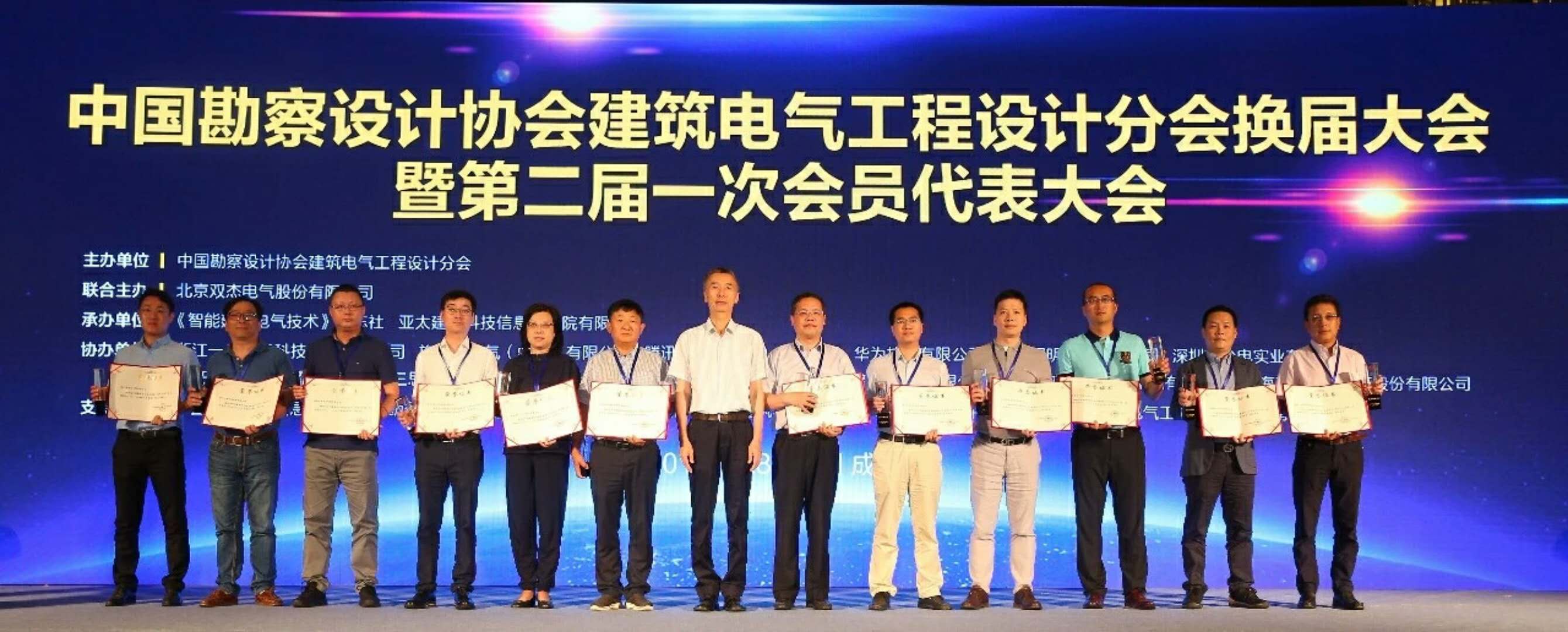 2018年6月28日,中國(guó)勘察設(shè)計(jì)協(xié)會(huì)建筑電氣工程設(shè)計(jì)分會(huì)換屆大會(huì)暨第二屆一次常務(wù)理事會(huì)”與“第二屆一次理事代表大會(huì)暨2017年度全國(guó)優(yōu)秀工程勘察設(shè)計(jì)行業(yè)(電氣專業(yè))獎(jiǎng)?lì)C獎(jiǎng)典禮”在成都萬(wàn)麗酒店隆重召開(kāi)。浙江中凱科技股份有限公司憑借在國(guó)內(nèi)市場(chǎng)多年來(lái)形成的良好的品牌知名度和雄厚的技術(shù)研發(fā)實(shí)力,獲得“建筑電氣分會(huì)第一屆理事會(huì)優(yōu)秀企業(yè)”榮譽(yù)稱號(hào)。公司常務(wù)副總經(jīng)理屠旭尉代表公司領(lǐng)獎(jiǎng)。